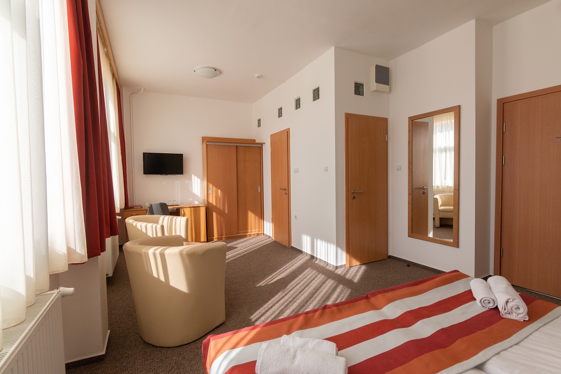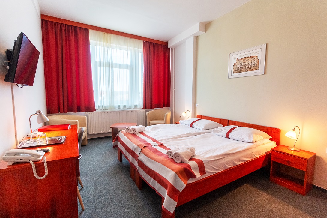 Standard kétágyas szobáink 24 nm alapterületüek. Letisztult stílus és színvilág jellemzi, mely nyugodt hangulatot biztosít a vendégeink részére. Minden szobában légkondíciónáló, TV, telefon, hűtő áll rendelkezésre.